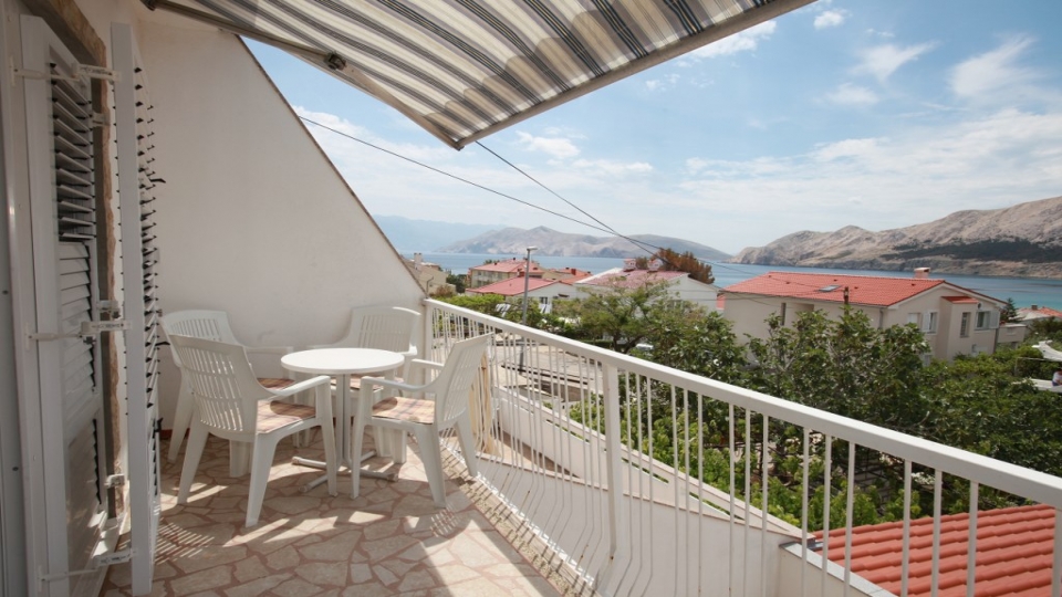 Apartman Erazmo nalazi se u samom centru Baške, u mirnoj ulici udaljenoj 150 m od plaže i stare jezgre. Apartman je veličine 55m2, sastoji se od 2 spavaće sobe 2X dvije osobe (sa mogučnošću smještaja još dviju osoba, dnevnog boravka s TV-om (satelit), potpuno opremljene kuhinje, novo uređene kupaonice i lijepe terase s pogledom na more. Kuća ima prekrasan pogled na plažu, cijeli zaljev i otoke. U dvorištu kuće osiguran je besplatni parking, upotreba roštilja na ugljen i vrtni tuš. Osigurana je i internetska veza.